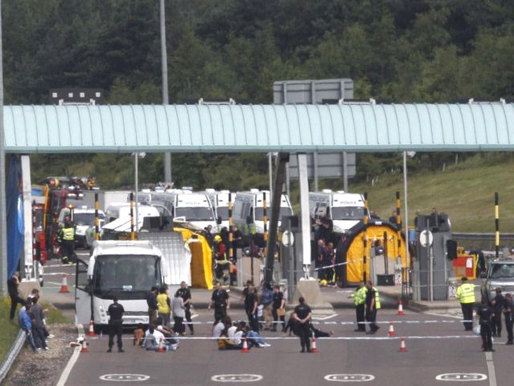 Armed officers led passengers off the coach and the toll road was closed in both directions for more than four hours.