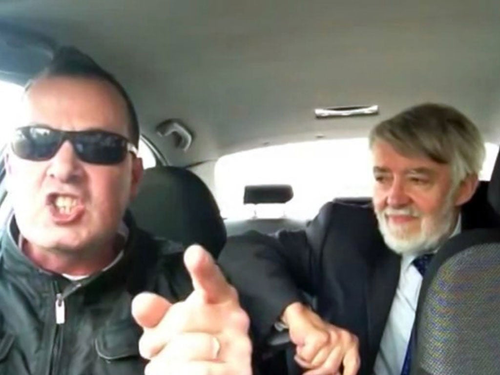 Equipped with only black sunglasses, a 12-year-old car and a mobile phone, the “Artist Taxi Driver” can now be found powerfully ranting about pretty much everything: from Egypt and the privatisation of the NHS to the evils of fracking and the absurdity of the Royal Family. He uploads videos three times a day, all for public consumption. This interview, he insists, will also be available online.