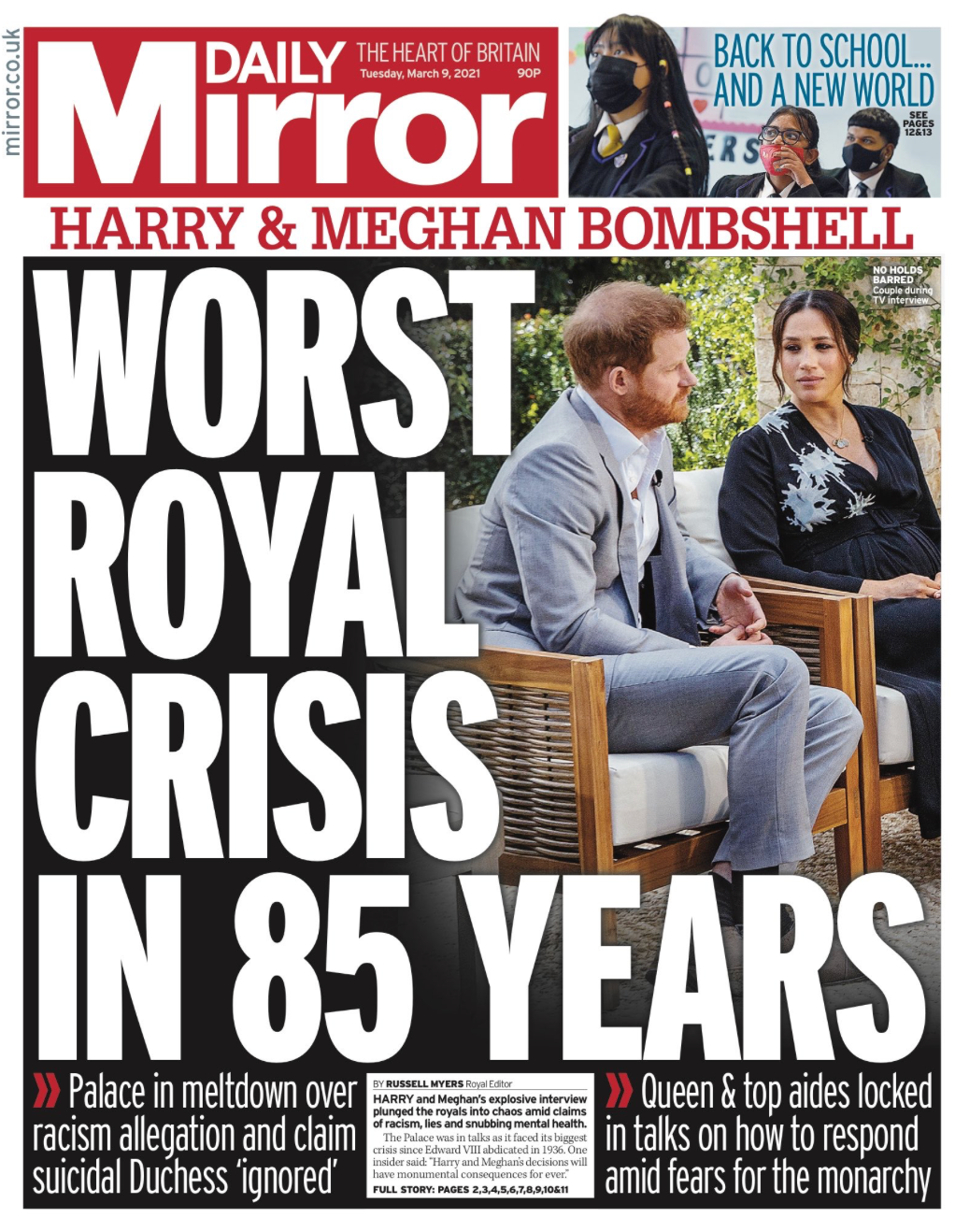 The Guardian called the allegations that the pair made “devastating” and The Mirror described the situation as “the worst royal crisis in 85 years,” suggesting that the palace was in a “meltdown” and was considering how to respond.