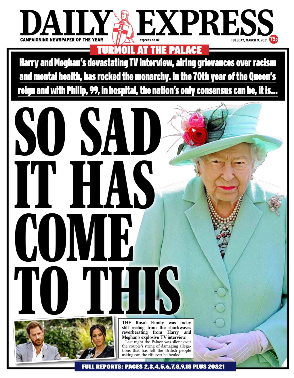 The UK’s newspapers were flooded with the aftermath from the Duke and Duchess of Sussex’s two-hour-long interview with Oprah Winfrey.
