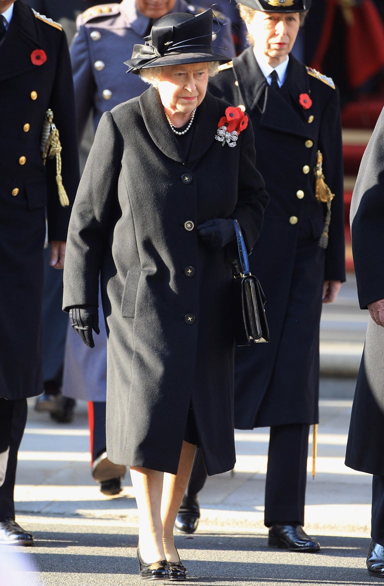 The Duchess of Cambridge was dressed in black like the other royals and wore two bright red poppies and a bowler style hat.