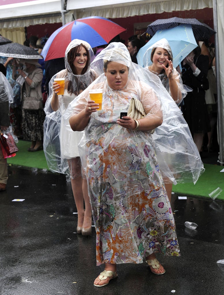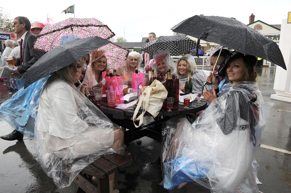 But an April shower hit in the afternoon leaving race-goers rather less dapper and more rain-dampened.