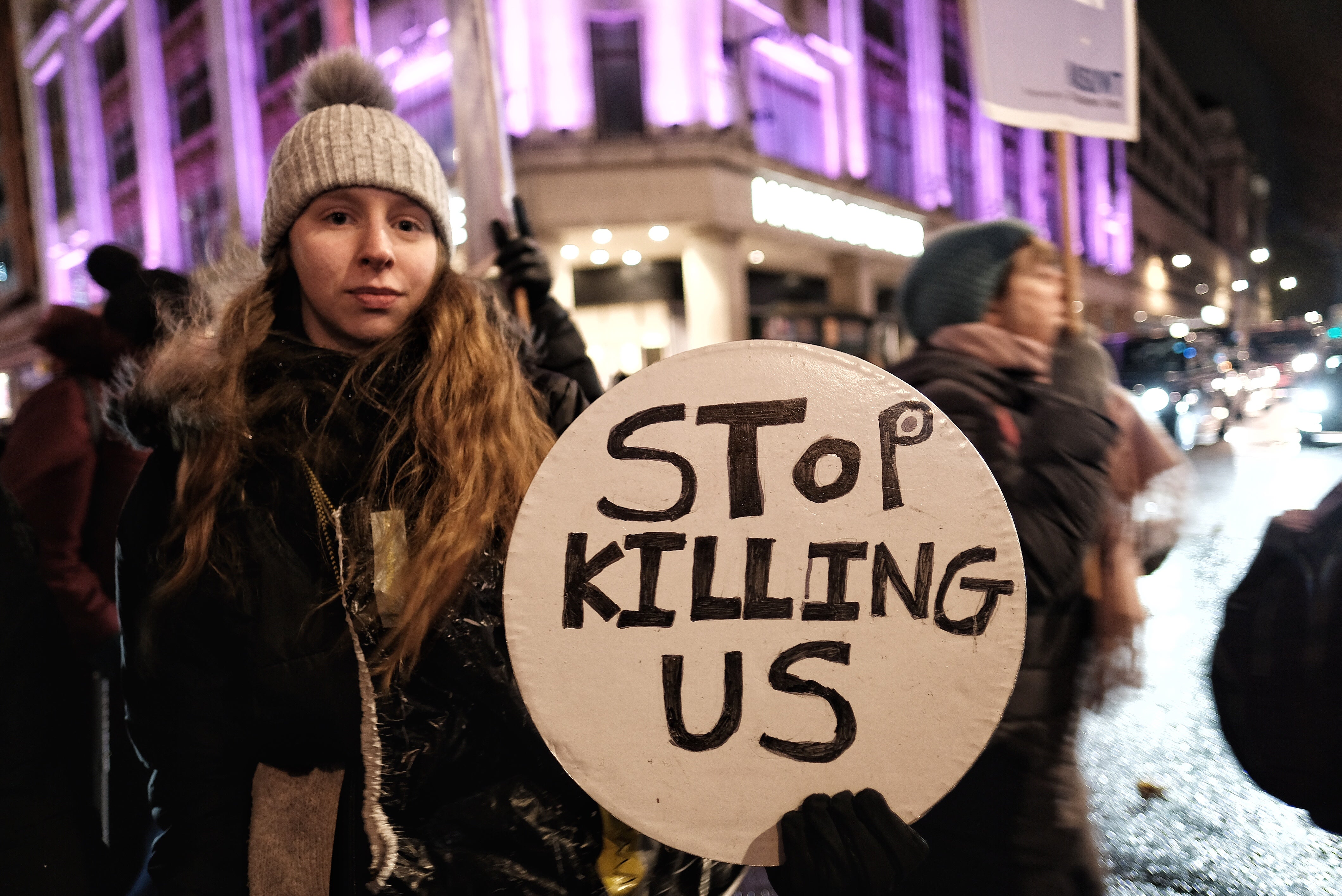 “We want to feel safe walking home alone at night. We need systemic change.”