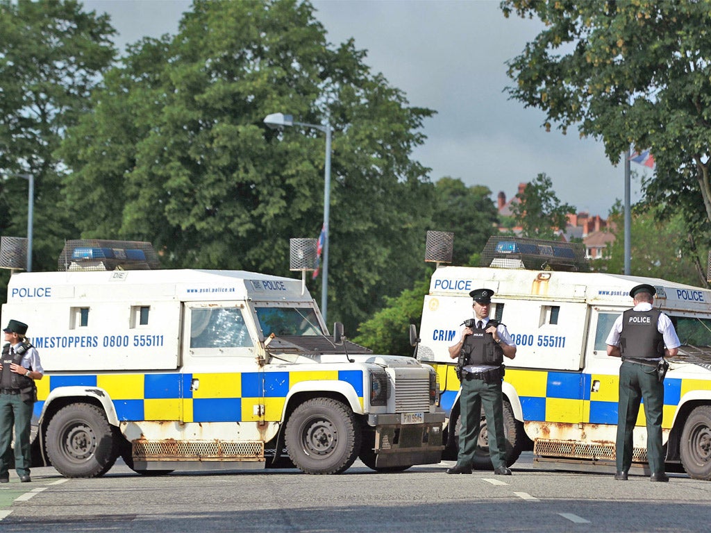 Tragedy unites Mr McGuinness, standing with unionist first minister Peter Robinson and Chief Constable Hugh Orde, as he denounces Republican dissidents who killed a police officer as "traitors to the island of Ireland."