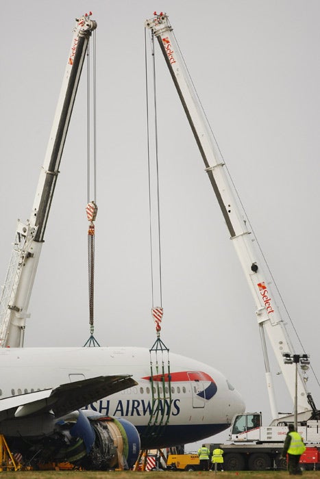 I stretched out in the back of the airport vehicle and the woman from the seat beside me offered me her jumper and her hand. I took both gratefully. An air hostess was with us and assessed the situation. We rolled up my jeans. My shin had blown up to resemble one of Popeye's forearms. I knew it wasn't good but I also knew it could be a lot worse. I looked back over my shoulder and there were fire crews dousing the engines with foam. It looked completely surreal, like someone else's crash. The undercarriage was 50 metres behind the plane, upside down on the grass, a clump of eight wheels pointing skyward.