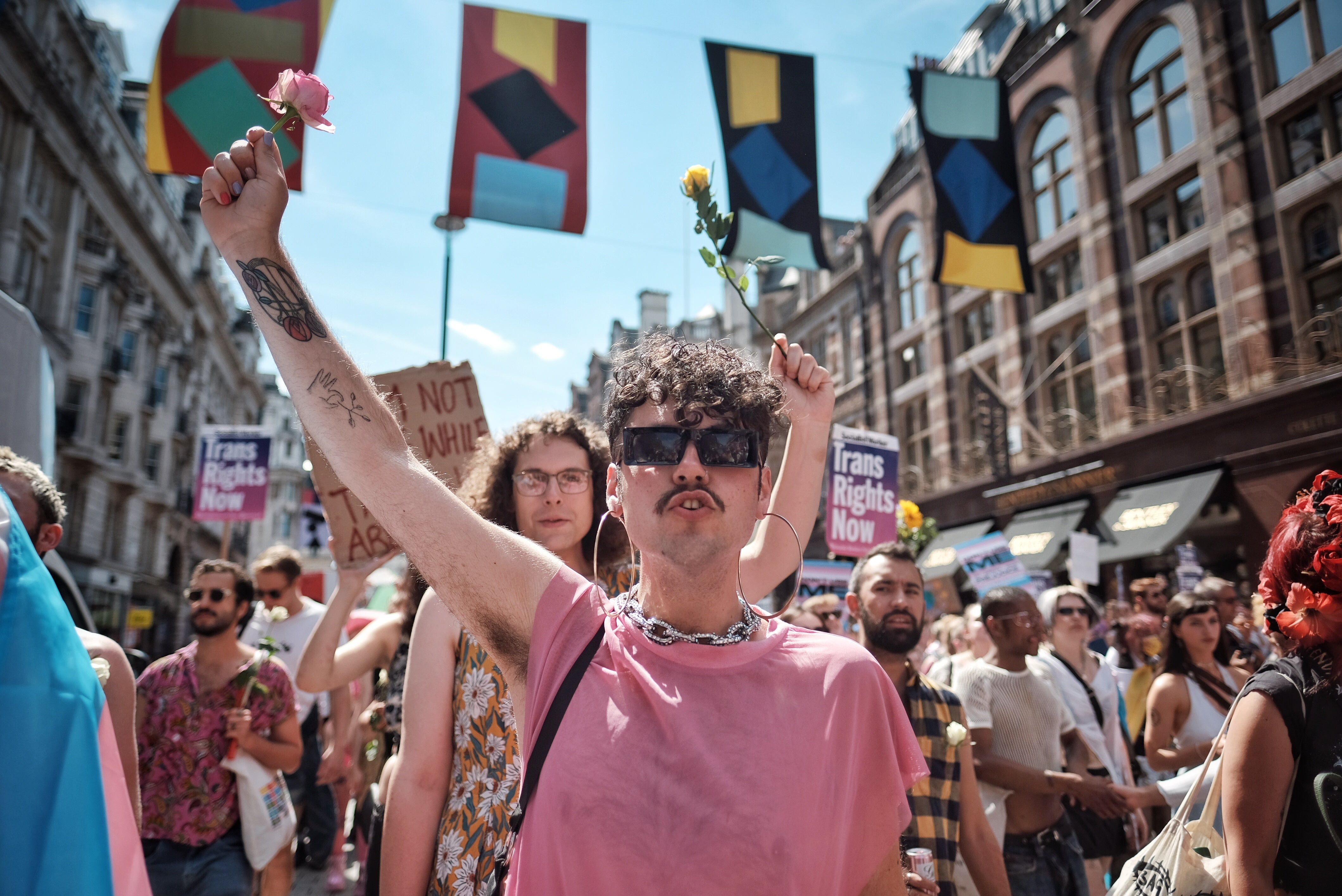 The annual march has a lot to respond to this year. “In recent months the Equality and Human Rights Commission (EHRC) has dramatically shifted its position on trans rights, suddenly requesting the Scottish government pause its reforms to the Gender Recognition Act (GRA), as well as arguing the UK government should delay reforms to conversion therapy for trans and intersex people,” a spokesperson for London Trans+ Pride said.