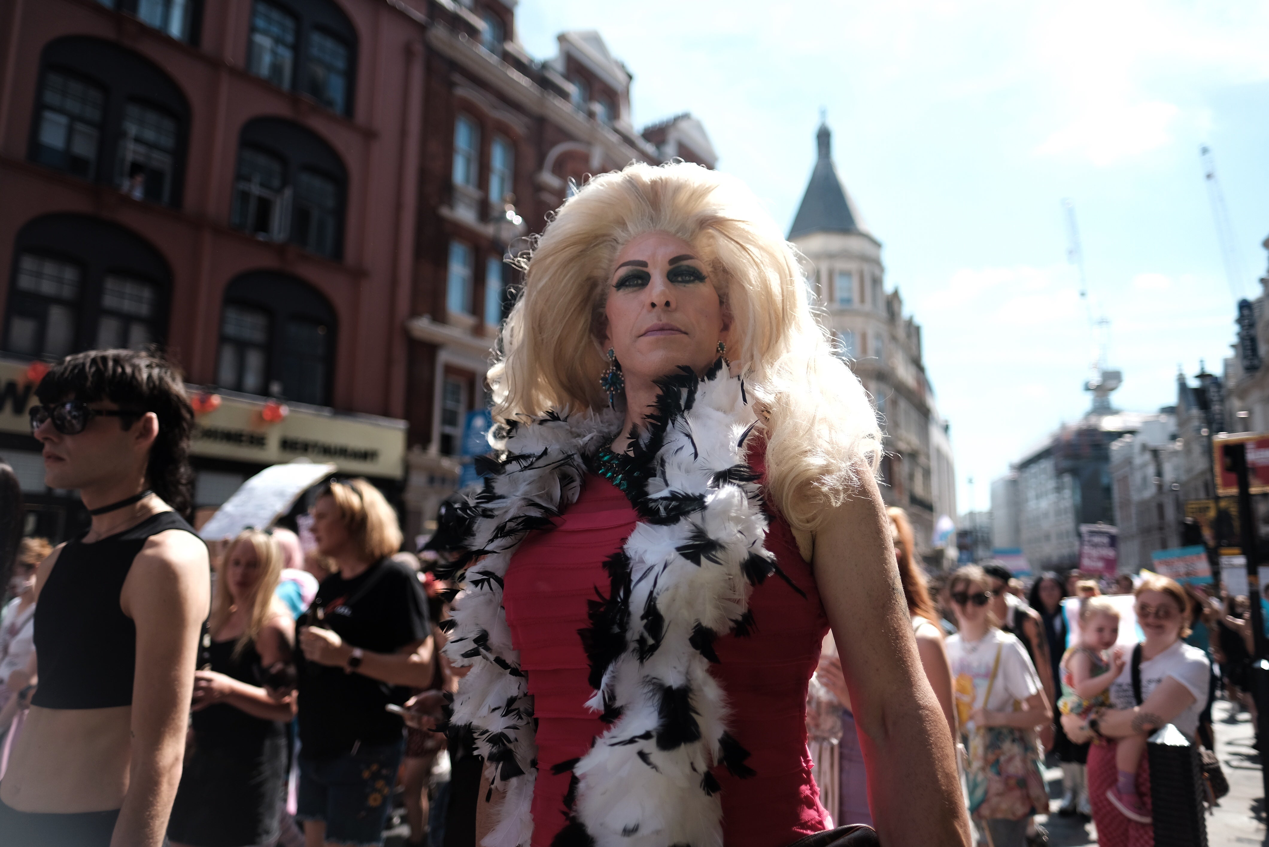I speak to Lorraine, a 30-year-old trans woman. “This is actually going to be my first pride march,” Lorraine says. “After feeling more and more worried about being trans in the UK over the last few years, I want to show those outside the trans community that there’s nothing to be afraid of, nothing to be worried about, and that we’re not actually the monsters some make us out to be.”