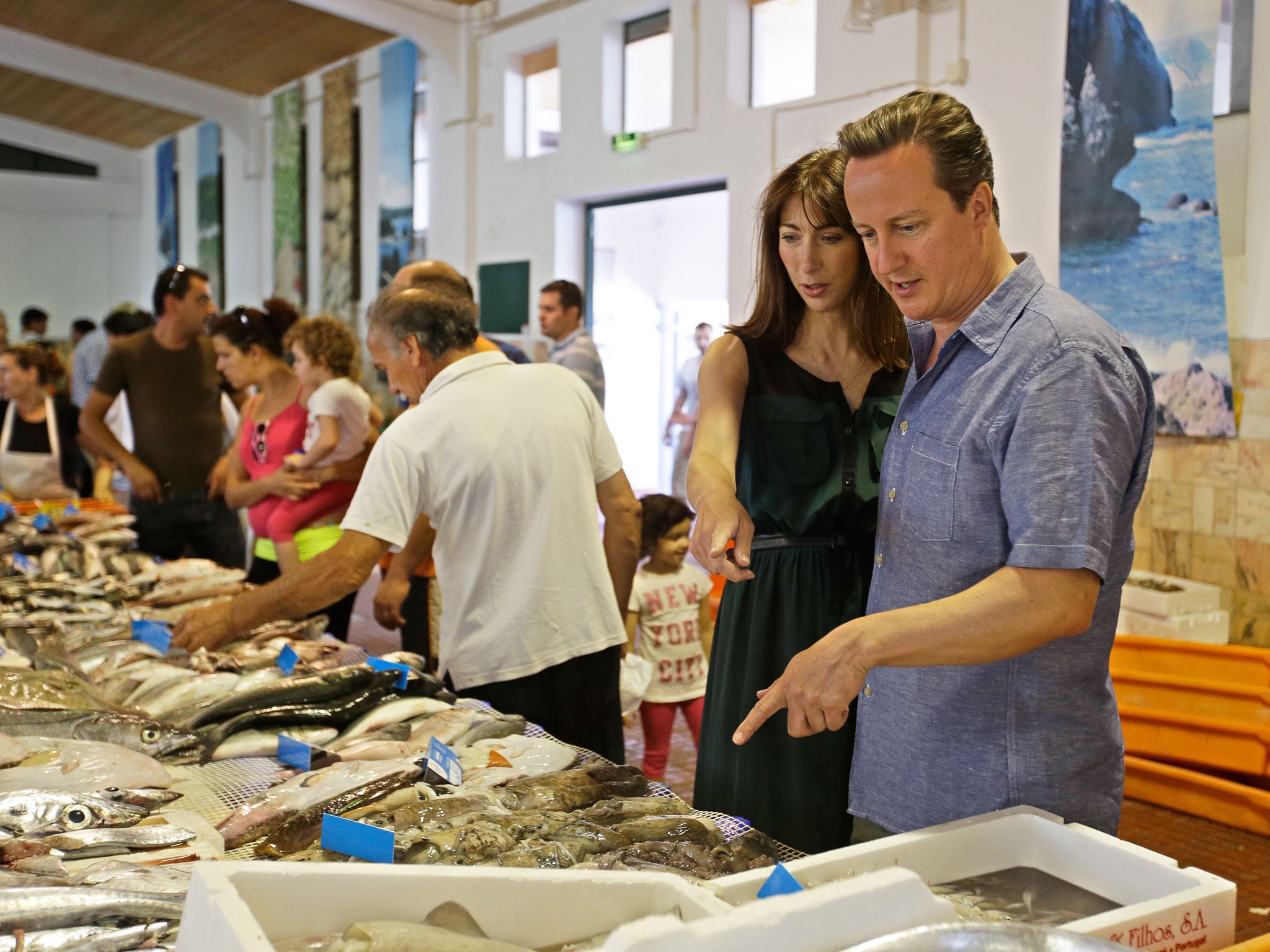 David Cameron and his wife Samantha have begun their summer holiday with a visit to a Portuguese fish market.