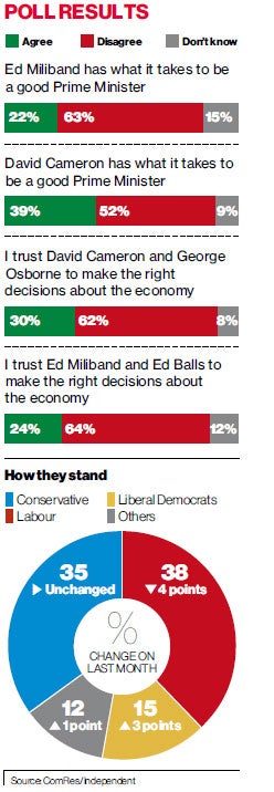 Only two out of 10 people believe that Ed Miliband has what it takes to be a good Prime Minister, according to an opinion poll for The Independent which highlights the mountain the Labour leader still has to climb.