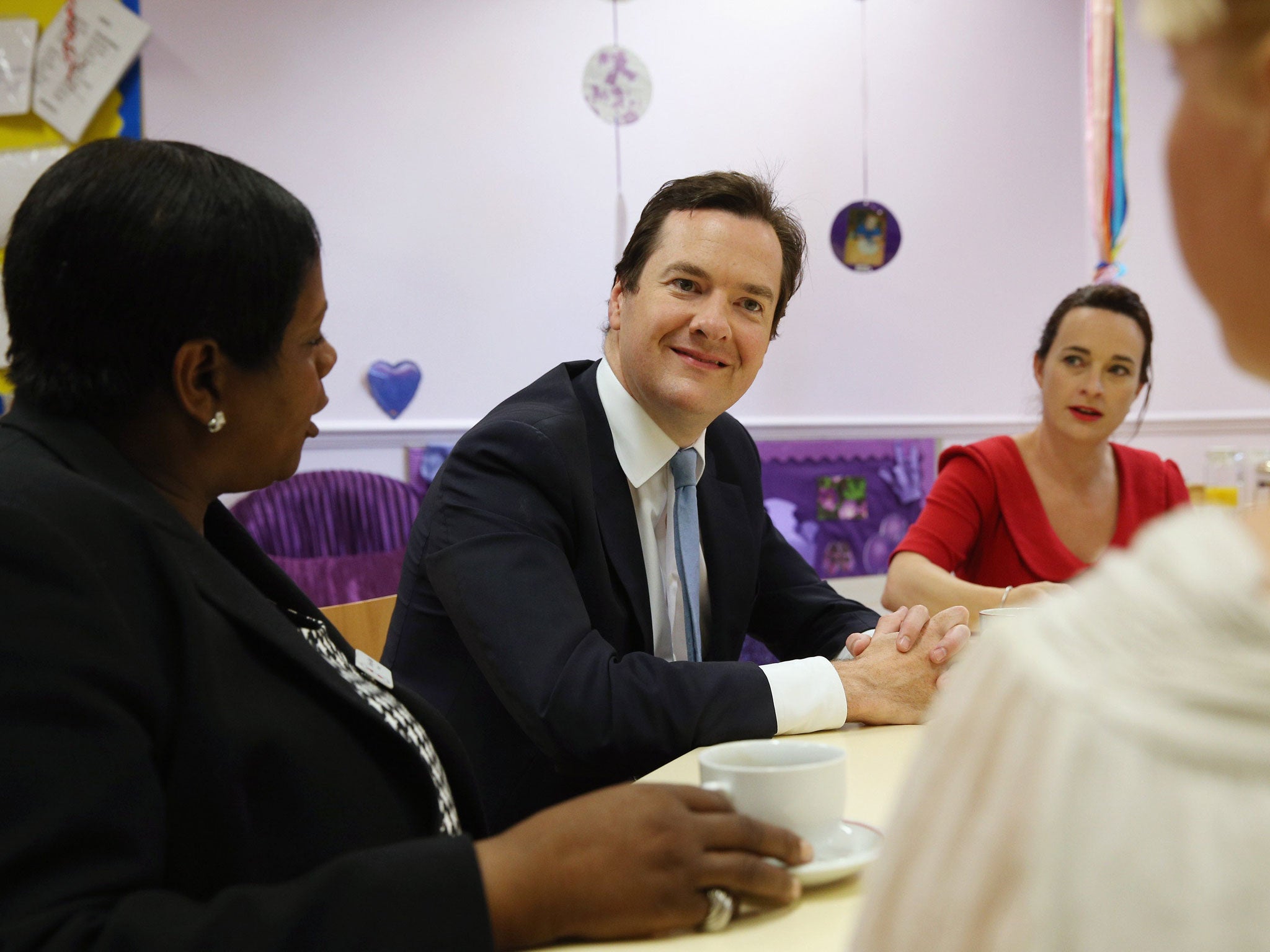 Mr Osborne toured a nursery today as he launched a consultation on the tax-free childcare voucher plans but he came under fire from pressure groups who accused him of stigmatising and patronising stay-at-home mothers.