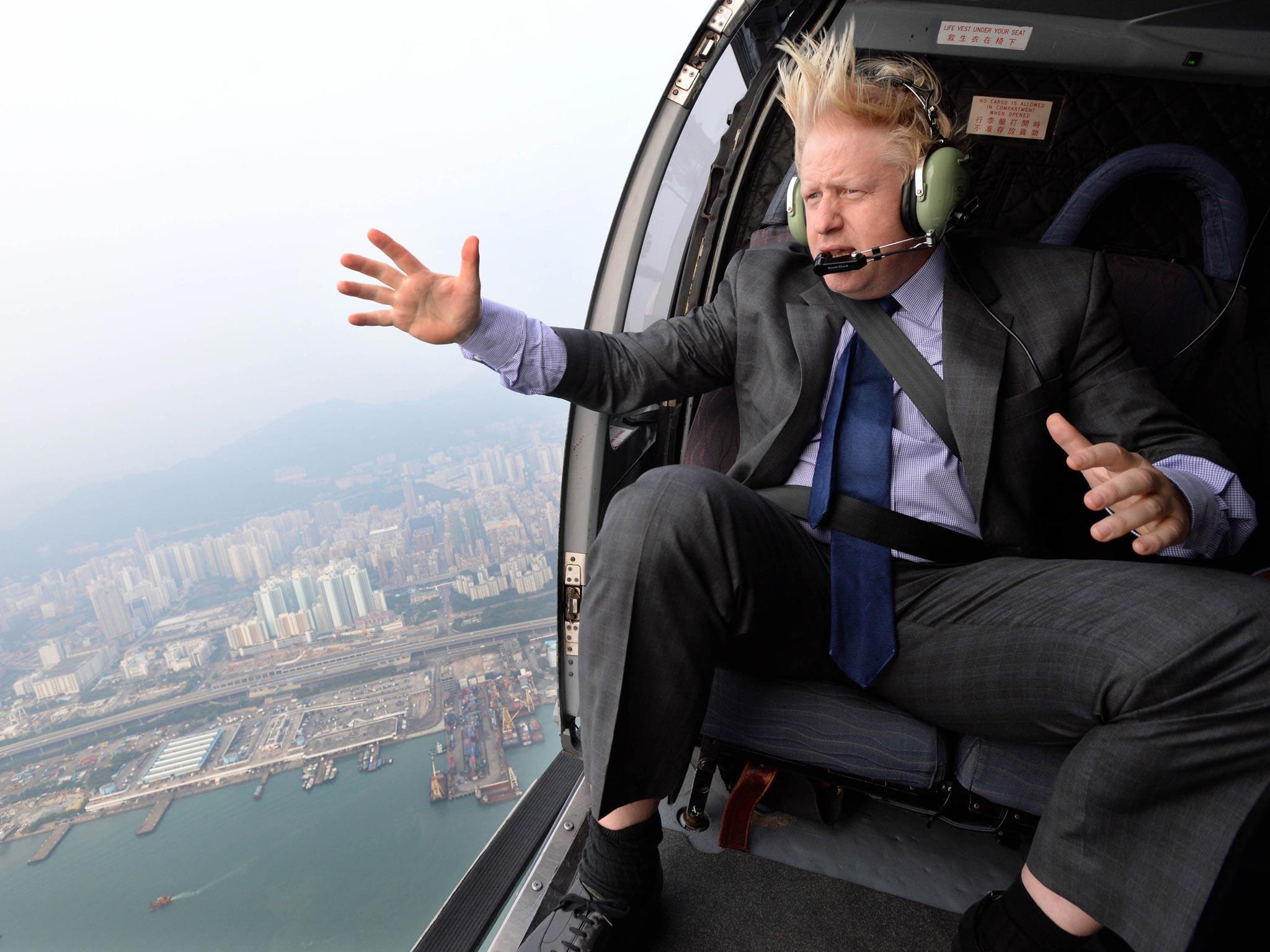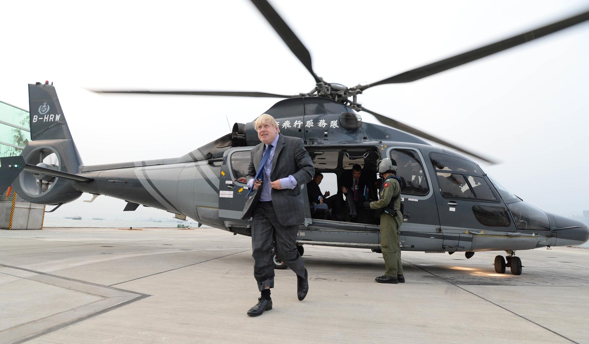Your support makes all the difference. Read more In scenes that look like a parody of a James Bond film, London Mayor Boris Johnson has been seen taking a helicopter ride over Hong Kong and touring the airport as part of his visit to China to promote trade between the far East and London.