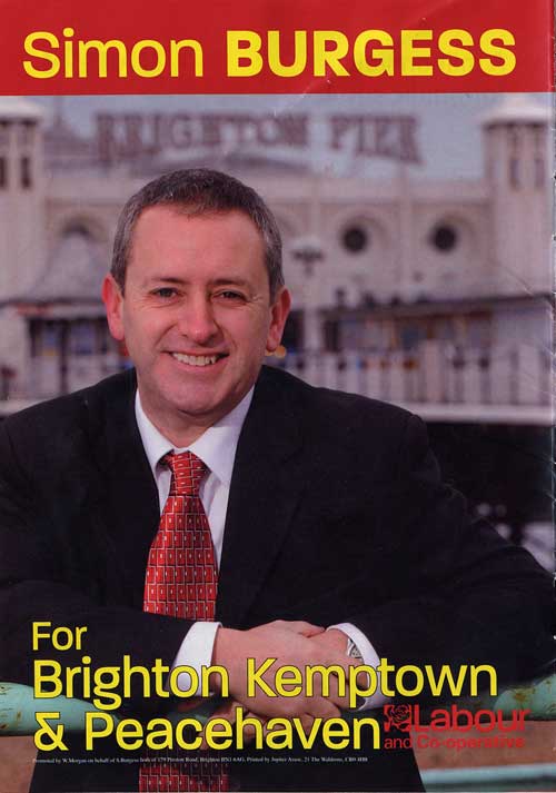 But while Labour HQ is determined to keep campaigning costs to a minimum, Simon Burgess, the party's candidate in marginal constituency of Brighton Kemptown, is doing nothing to help them.