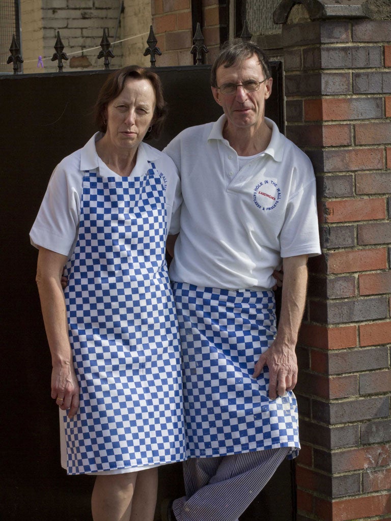 Shouts of "Hiya, duck!" and "Do you want brown sauce with that?" float through the window, along with the smell of sizzling sausages and bacon. The mood at the Hole in the Wall in Hanley, Stoke-on-Trent is upbeat, and the banter comes as thick and fast as its servings of steaming oatcakes.