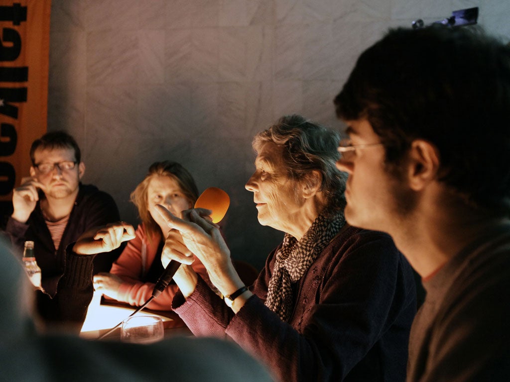 Founded on one rule – the participants set the agenda – the 30 or so people who fill this training session seem intent on lightening the tone. As people take turns to sit at the table, conversations flow from garden gnomes to bad Christmas gifts, to the Ten Commandments and then back to romance in the workplace. Saul Albert, a 24-year-old PhD student and Talkaoke volunteer, says most people are "aware that they're performing".