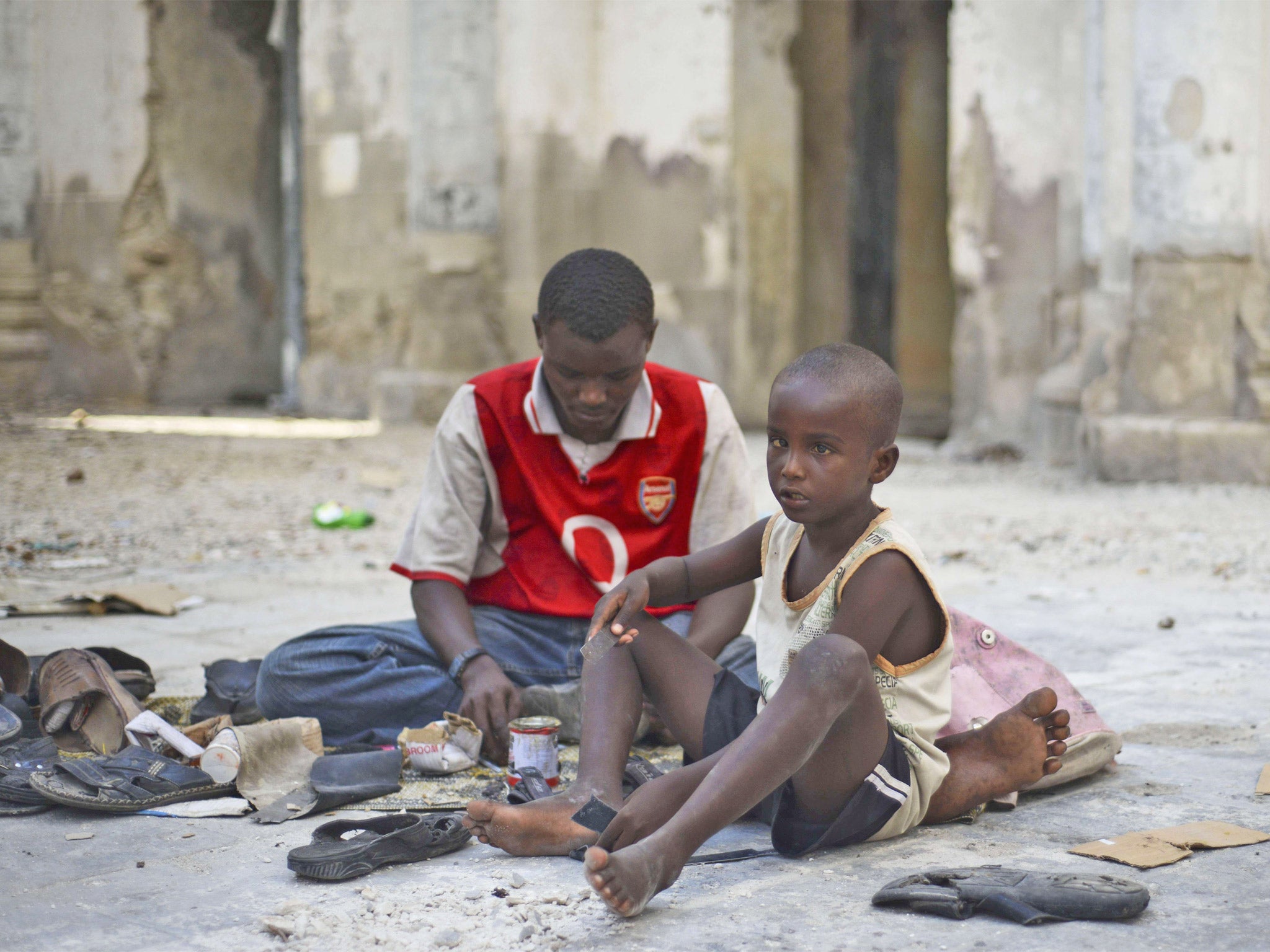 The Roman Catholic cathedral, built by the Italian colonists and reduced to a stone skeleton during the war, is a short walk away in Shangaani and is ringed with the tarpaulin domes of IDPs.