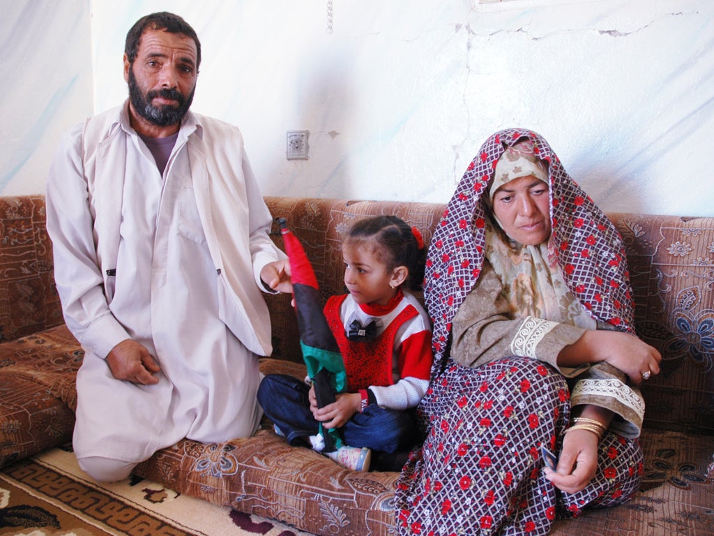 Last month, Sarag Adin, 51, and his wife Naema Masaud, 43, had just returned home with their six children to Takut village after sheltering from the fighting in Tunisia. Their house had been occupied by Gaddafi forces and was riddled with bullets, but they finally felt safe. Then four weeks ago, while Naema was resting inside the house, she heard an enormous explosion. When she went outside she found her youngest son, Zakaria, 11, lying motionless in their garden.