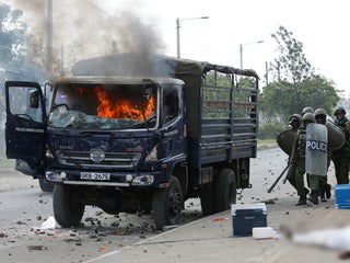Show all 6Earlier on Friday, demonstrators threw up burning barricades on Mombasa Road, the highway that links Nairobi's downtown business district and the airport.