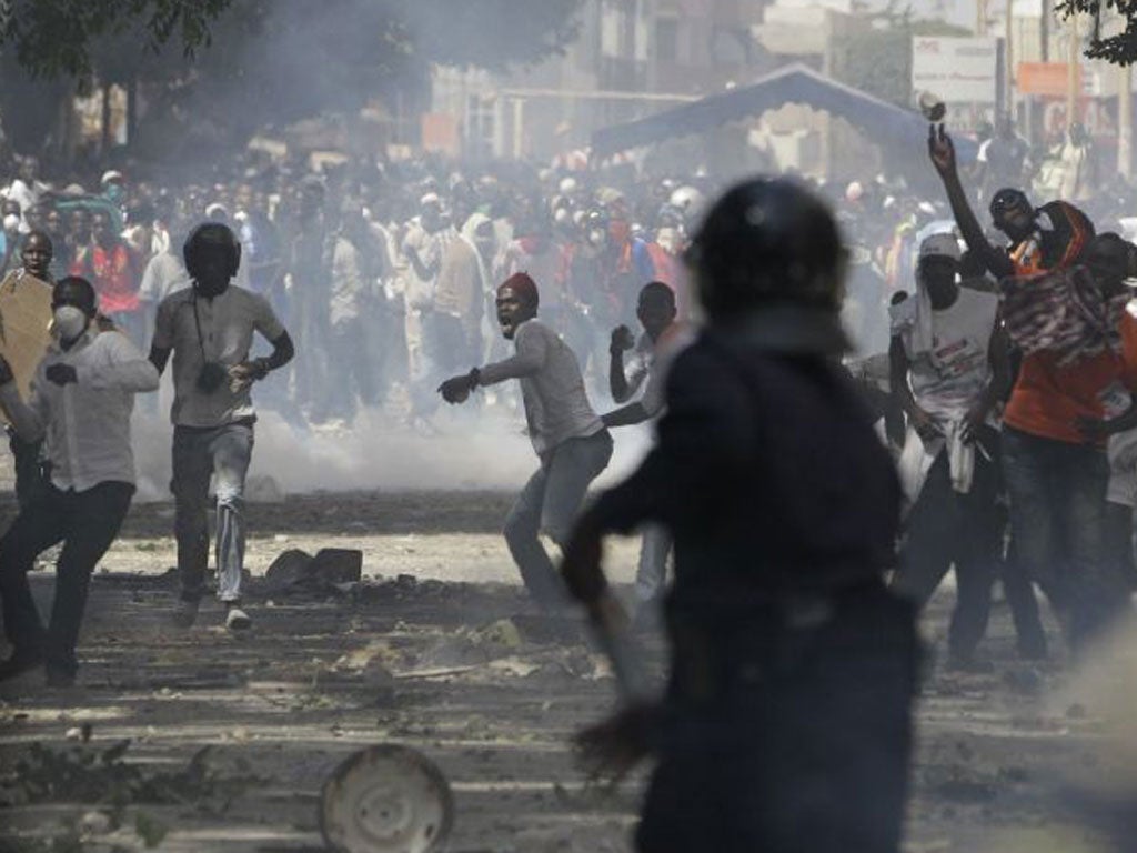 In their determination not to allow a Tahrir Square in Dakar, authorities have flooded the streets around the city's Place de L'Independence with security forces. But in what is fast becoming a daily ritual, lines of protesters – sometimes a few dozen, sometimes hundreds – appear from the sidestreets and form the X with their arms, chanting "Nadem", which means "leave" in Senegal's dominant language, Wolof.