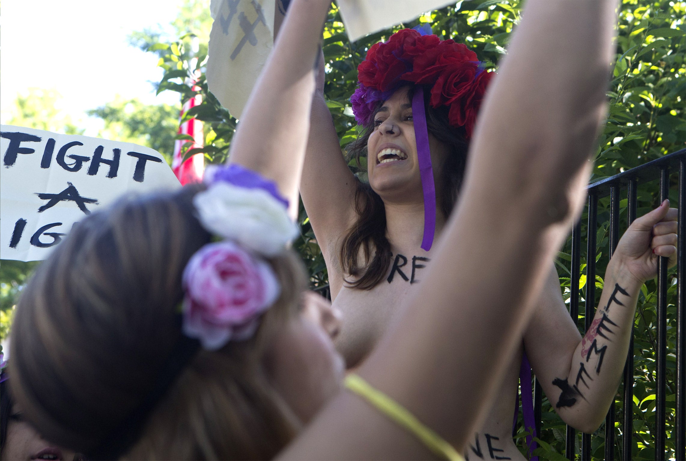 The women were arrested and detained on the 29th May after protesting topless in support of Amina Tyler, a Tunisian Femen activist who was arrested last month for spraying grafitti on a wall close to a cemetery. Amina also caused a huge scandal in Tunisia, which is predominantly Muslim, back in March when she posed topless with the message ”f*ck your morals“ written on her chest and posted the photo on a Tunisian Femen Facebook page. She is still awaiting trial and faces charges of indecency and desecrating a cemetery.
