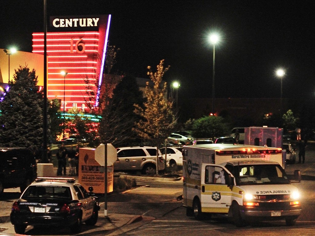 In the early hours of yesterday morning, a gunman burst into auditorium nine of the Century 16 multiplex in Aurora, a suburb of Denver, where customers were attending at a special late-night screening of the film. He was wearing a gas mask, bullet-proof vest and black combat clothing. After kicking open a fire escape, and tossing two tear-gas grenades into the crowd, he walked into the auditorium and opened fire. At least a dozen people were killed and 38 injured.