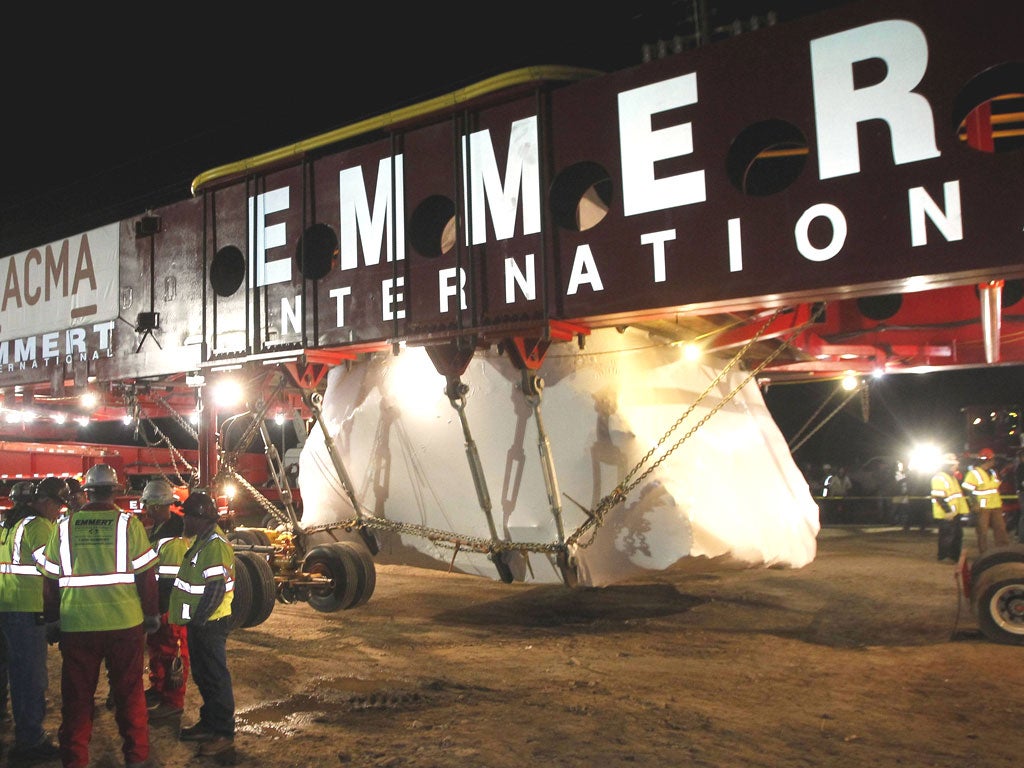 Over the next month, the transporter will be dismantled and the boulder moved on to metal rails above its 456-foot long trench.