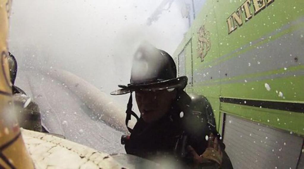 Footage was captured on a helmet camera worn by one of the firefighters attending the scene and is now being investigated by authorities.