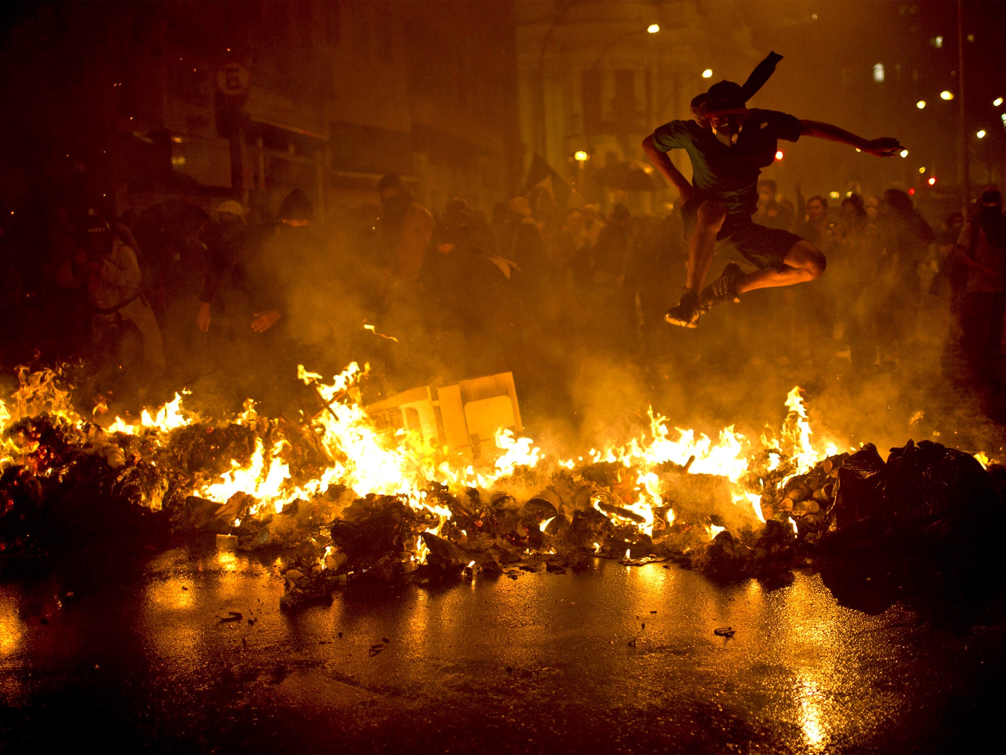 There were ugly scenes on the streets of Rio de Janeiro last night after peaceful demonstrations turned violent.