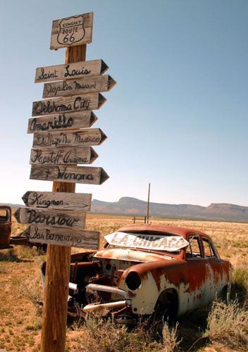 He has a point. It has often been said, over the years, that there are two versions of Route 66. The first is the road itself: a long stretch of tarmac, large portions of which pass through unremarkable scenery. The second is the route that exists in the popular imagination: a nostalgic symbol of hope and freedom deeply that brought generations of migrants west to California, 20th century America's version of the Promised Land.