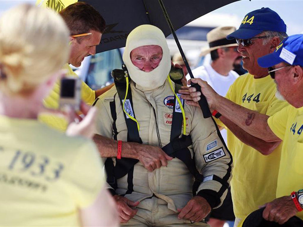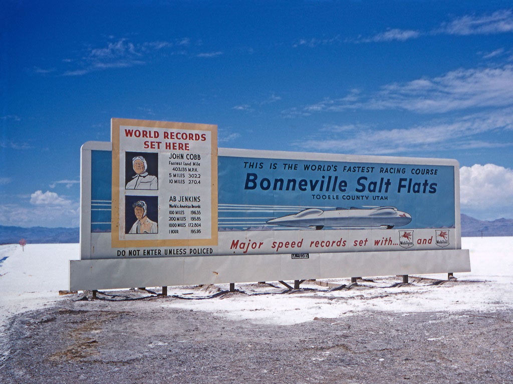 Today, the Bonneville Salt Flats remain home to world-famous annual "hot-rodding" championships. Volk visits three times a year to race his pride and joy, a 1929 Ford roadster fitted with a 1200 horsepower Chevrolet engine. "It's hard work," he says. "Some days, holding the steering wheel is like going to a hula dance; but what a thrill!"