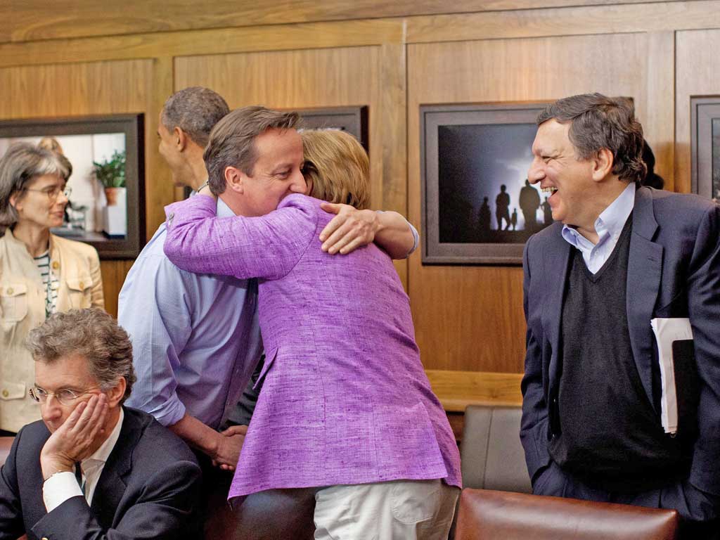 The German leader came under immense pressure from David Cameron and Barack Obama to come up with a new plan to help Europe emerge from the crisis that encourages growth. While Ms Merkel wants Greece's continued membership in the eurozone tied to Athens meeting tough austerity measures laid out in its bailout programme, other G8 leaders are calling for a softer approach. The final communiqué issued by the summit stressed "our imperative to create growth and jobs" – a line that, according to reports, Germany had to be talked into agreeing.