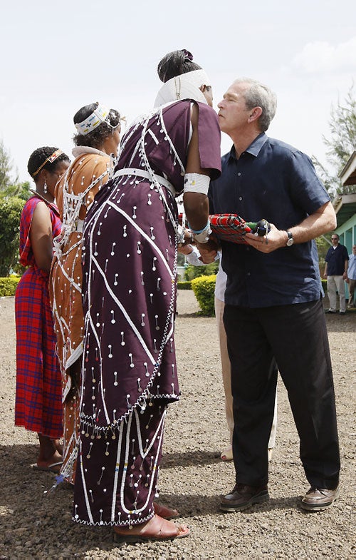 Bush was in Tanzania to sign a compact for $698m in aid from the United States to help the African nation in its struggle against the spread of malaria. He had also brought Tanzanian President Jakaya Kikwete, a basketball player in his youth, the gift of a pair of Shaquille O'Neal's trainers.