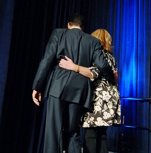 And, in a stroke of irony, his first appearance as the party's all-but-anointed nominee yesterday came at the same conference where Mr Romney took his leave – before an audience with which he has clashed in the past.