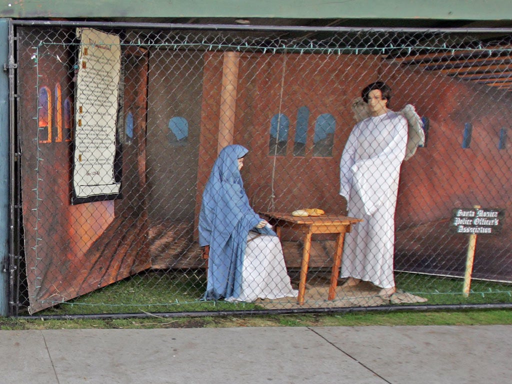 Since the 1950s, religious groups have been recreating tableaux of Mary and Joseph, along with various wise men and shepherds, at Palisades Park, a cliff-top promenade overlooking Santa Monica's famous beaches and pier.