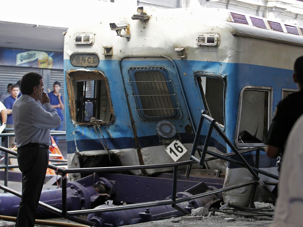 The commuter train came in too fast and hit the barrier at the end of the platform at about 12mph, smashing the front of the engine and crunching the leading cars behind it, Argentina's transportation secretary told reporters at the station.