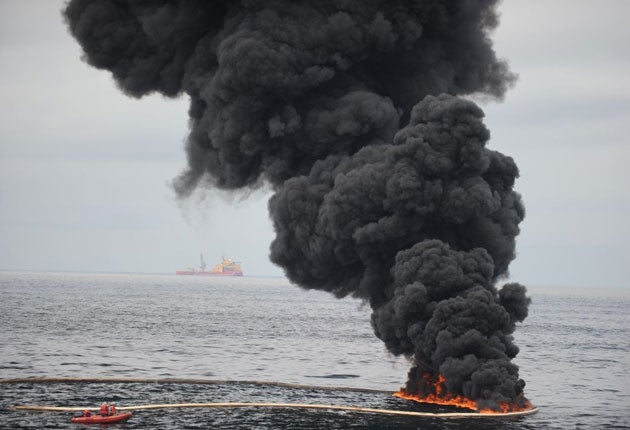 As officials confirmed the first landfall of oil on an uninhabited island beach, Mr Hayward – who can expect to be grilled harshly at hearings in Washington starting next week along with other BP executives – pointed to the failure of the "blow-out prevent" at the drill hole. "That is a piece of equipment owned and operated by Transocean, maintained by Transocean; they are absolutely accountable for its safety and reliability, and they report to the regulatory authority for its safety," he said.