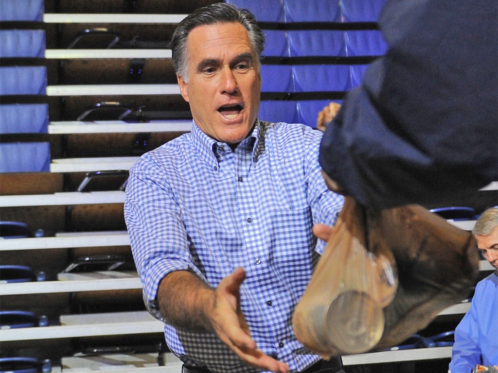 In Ohio yesterday, Republican presidential candidate Mitt Romney appeared briefly at an event in Dayton that was billed as a benefit for victims of the storm rather than a campaign rally – although the distinction was somewhat blurred. But in a potentially risky move, his team announced that, unlike Mr Obama, the Republican challenger would return to the trail in earnest today with three rallies planned in the swing state of Florida, starting with a morning event in Tampa.
