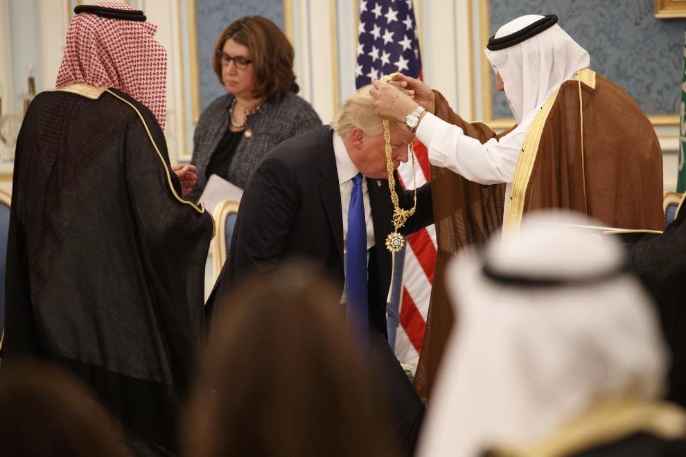 Donald Trump received Saudi Arabia’s highest civilian honour within hours of touching down in the Middle Eastern kingdom.