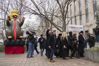 One animal that Mr Stone probably does not care for is the giant inflatable rat dressed to mimic Donald Trump that greeted him on his arrival at the courthouse this morning.