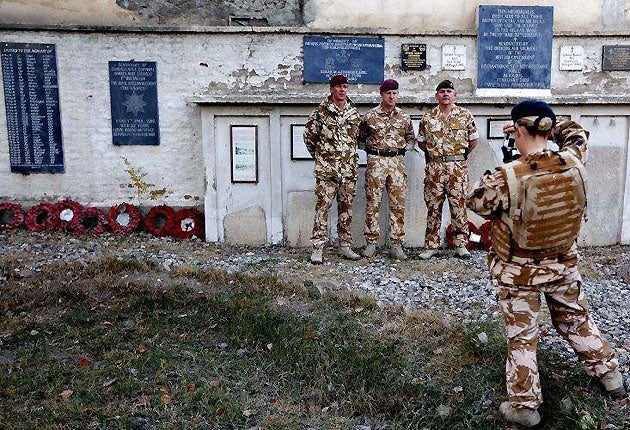 After the official party left for the fortifications of the British embassy and Nato headquarters a few people wandered in to pay their respects. Among them was Mark “Jaymo” James, a former British Army colour sergeant, who had returned to Afghanistan as a consultant for the recent elections. He was looking at a plaque of three former comrades who were acting as bodyguards for an Afghan official when they were killed. “Some Afghan security people turned on them. Some things never change do they?” Asked Mr James. The details of the five soldiers gunned down by a renegade Afghan policeman in Nad-e-Ali will soon be added to the wall.