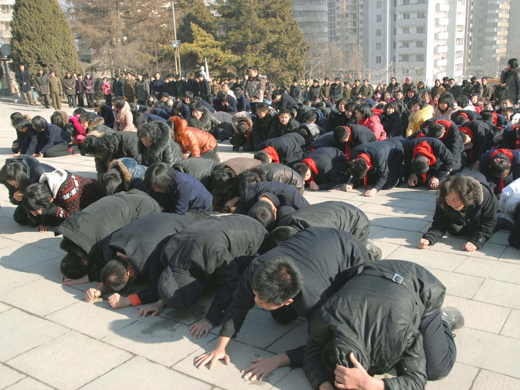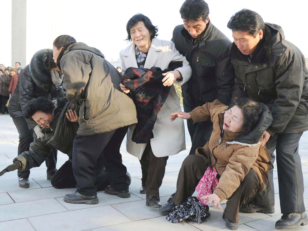 The grief of his people, at least those captured by the cameras, was apparently unbounded: the newsreader on state TV clad in a formal black hanbok to make the announcement was ashen-faced and in tears, while on the streets of the capital Pyongyang women in puffa jackets and fur coats rocked, waved their hands and slapped the pavement in woe.