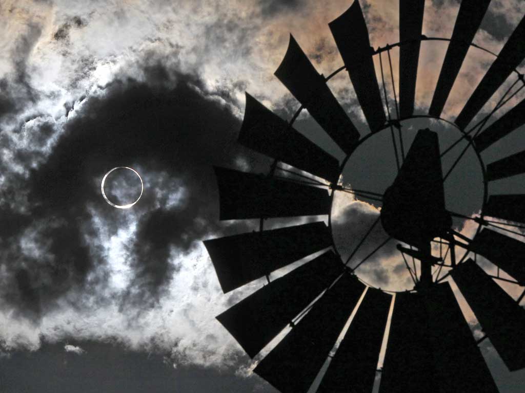 From the California coast to the top of Mount Fuji in Japan, the effect was dramatic: the Moon nearly blotting out the Sun to create a blazing "ring of fire" eclipse. Millions of people across a narrow strip of east Asia and the western US turned their sights skyward for an annular eclipse, which occurs when the Moon is at its farthest from Earth and does not block out the Sun completely, leaving only a golden ring around its edges.