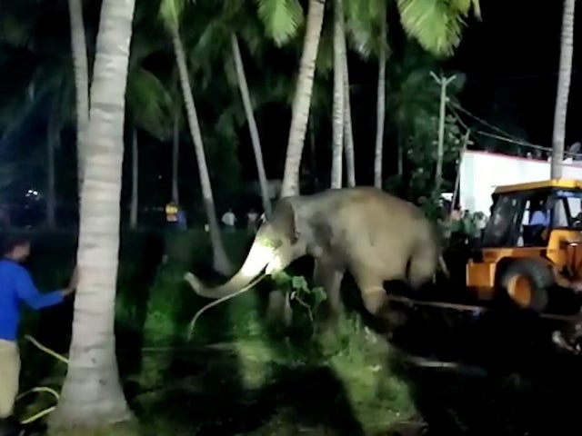 Elephant trapped down well rescued with crane after 16-hour struggle