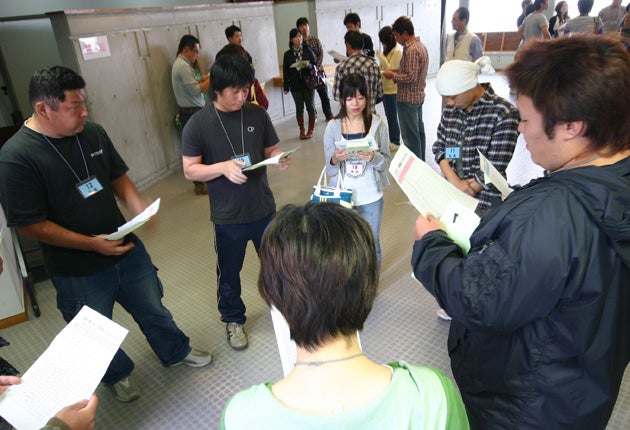 "It's harder than ever for people to find a partner they want to have a family with," explains Nobuki Manome, head of the Ibaraki Meeting Support Centre, a matchmaking service that operates out of the city office in the prefectural capital Mito. "We have decided to step in and give them a little help." Mr Manome hovers near today's group of hopefuls – 40 men and women, some of whom have travelled two hours from Tokyo. "There's a purposeful atmosphere here today. At least the city women aren't wearing high-heel shoes."