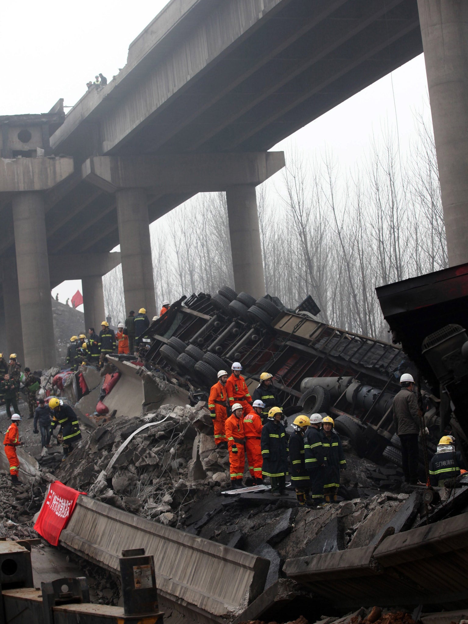 The blast destroyed a section of the bridge outside the city of Sanmenxia.