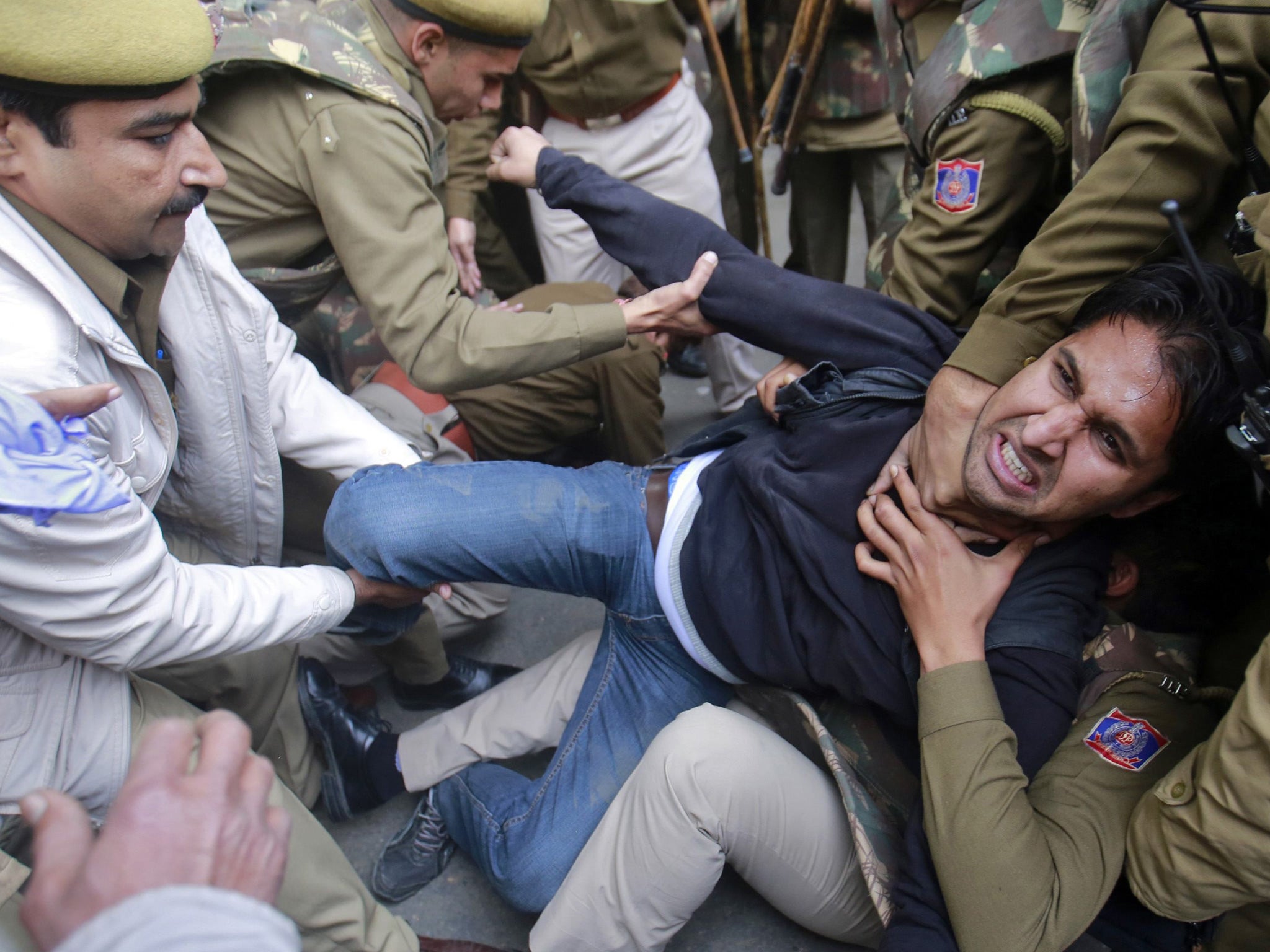 Yesterday, dozens of protesters tried to break through a police cordon and march to the parliament building in the capital, but were pushed back. The protesters, mainly from the student wing of the opposition Bharatiya Janata Party, shouted anti-government slogans. Hundreds of police sealed off the high-security area where the seat of government is located, in anticipation of more protests.