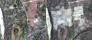 The new aerial photographs show at least 28 villages or hamlets were bulldozed in a 30-mile radius around Maungdaw between December and February; on some of the cleared areas, construction crews had erected new housing and helipads.
