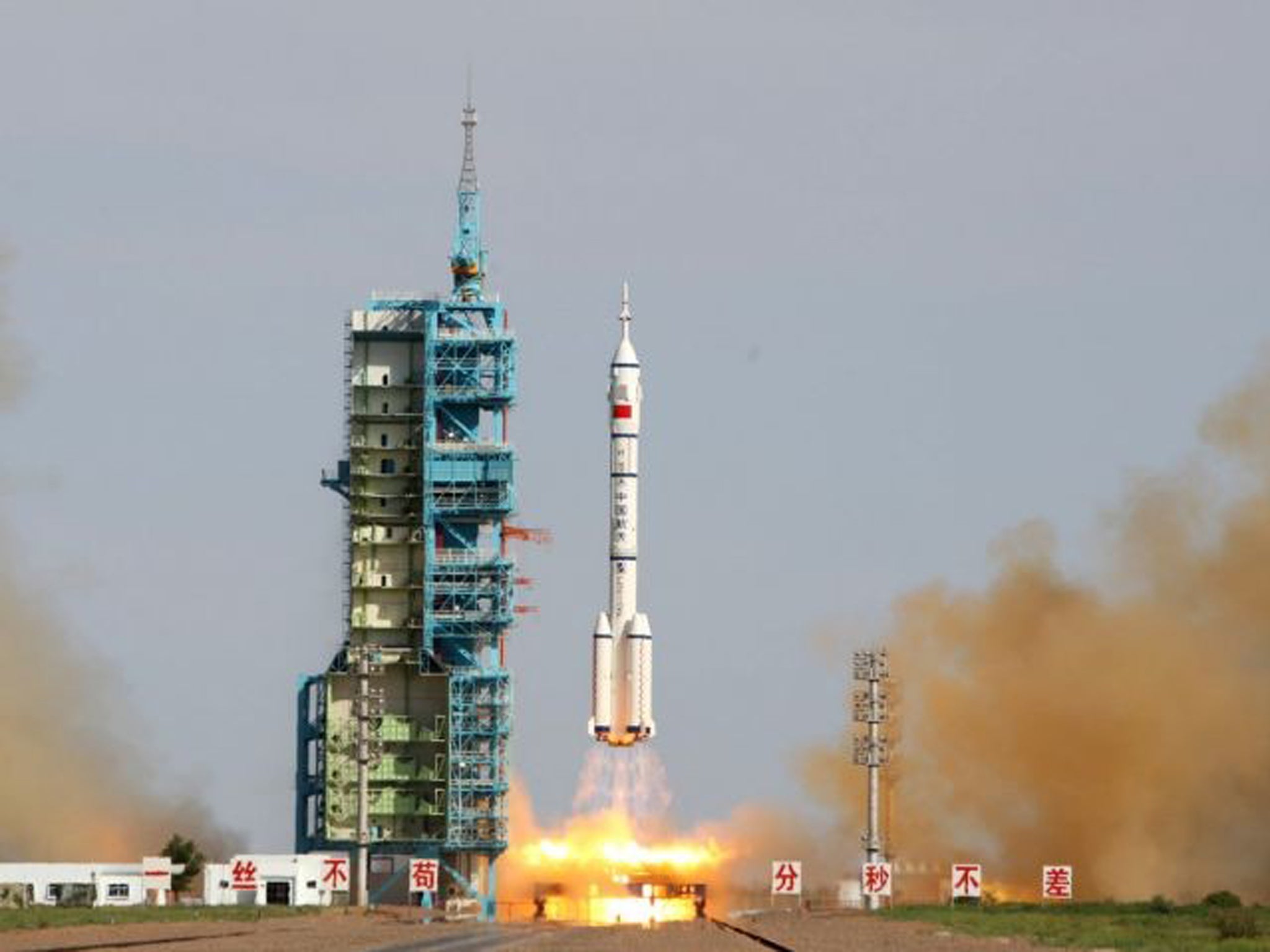 The craft is carrying two men, mission commander Nie Haisheng and Zhang Xiaoguang, and China's second female astronaut, Wang Yaping.