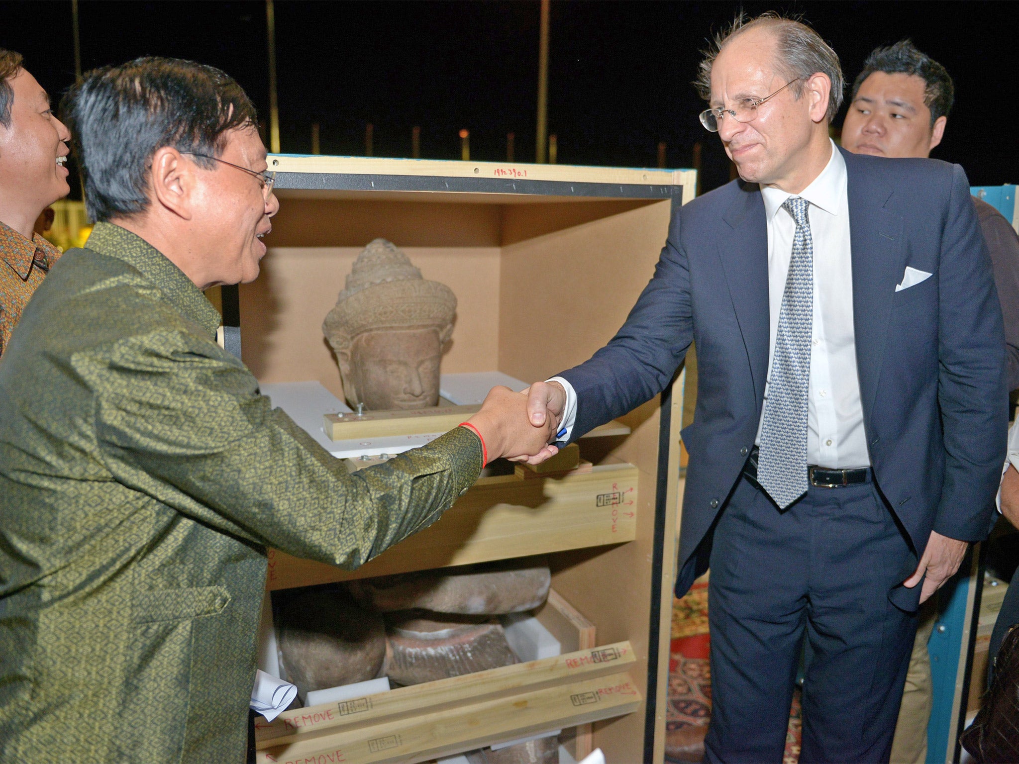 The Cambodian government said the returned statues will first be displayed at the offices of Prime Minister Hun Sen, where there will be an international Unesco meeting this month. It is likely they will afterwards be moved to Phnom Penh’s National Museum though there is also the possibility of moving them to a new institution closer to Siem Reap.