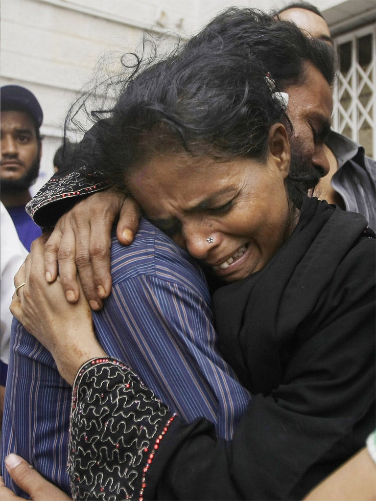 But whatever caused the fires the aftermath was clear and shocking. Sobbing relatives gathered in hospitals and morgues as more and more bodies were brought in. Those who had lost loved ones turned their anger to the authorities and the government of President Asif Ali Zardari. In one facility, 30 bodies burnt beyond recognition had been laid out as workers complained they were running out of space. Workers said the bodies would have to be subsequently identified using DNA tests.