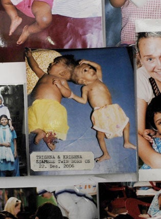 She and Kartik Mallick, the twins' father, gave the girls to the Nirmola Missionary Child Centre in their home town Khulna. Trishna and Krishna were then transferred to a home in the capital Dhaka where Ms Noble, campaigned to get them to Australia.